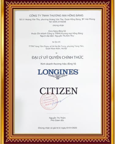 Tất cả sản phẩm phân phối tại Donghochinhhang.com đều đi kèm giấy chứng nhận đại lý ủy quyền từ hãng, được trưng bày tại hệ thống showroom cao cấp tại các trung tâm thương mại lớn tại Hà Nội và Hải Phòng. Đặc biệt, khi mua hàng tại đây, khách hàng sẽ nhận được đầy đủ chế độ bảo hành toàn cầu theo chính sách quốc tế của từng thương hiệu.